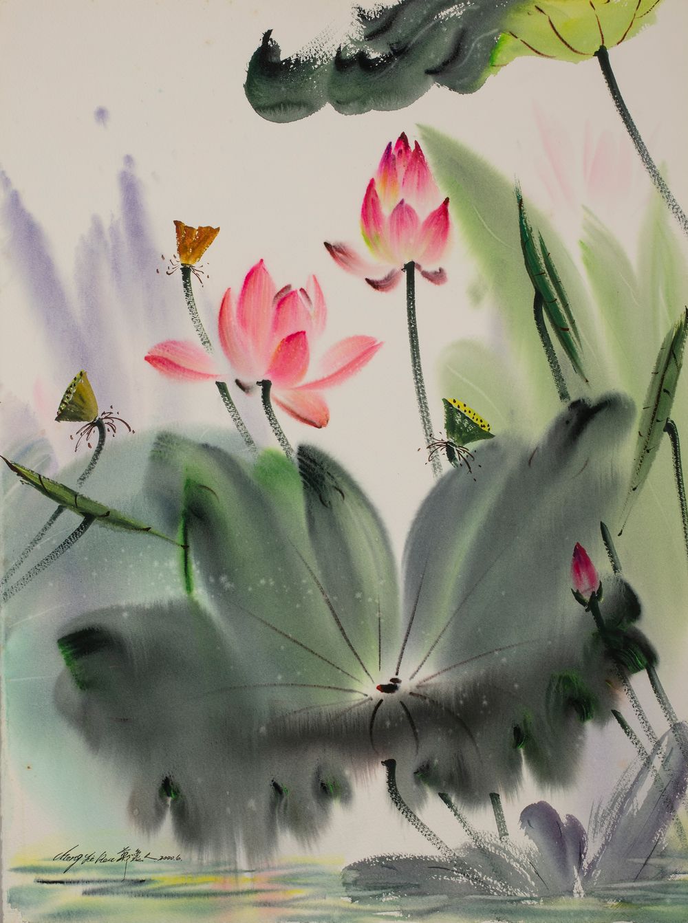 The tranquility of a lotus pond as a gentle breeze passes through.