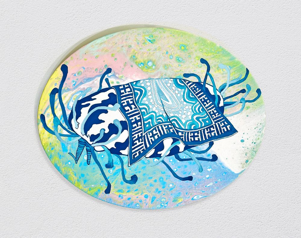 葉倢伃的作品就像是一場視覺上的饗宴,她以豐富的色彩搭配和超現實主義的視覺元素來呈現繽紛的畫中世界。每一幅畫作都充滿著細節,觀眾可以在其中發現無盡的故事和意義。她的作品常常引人深思,讓觀眾不僅僅是欣賞,更是反思人類存在和社會結構的複雜性。