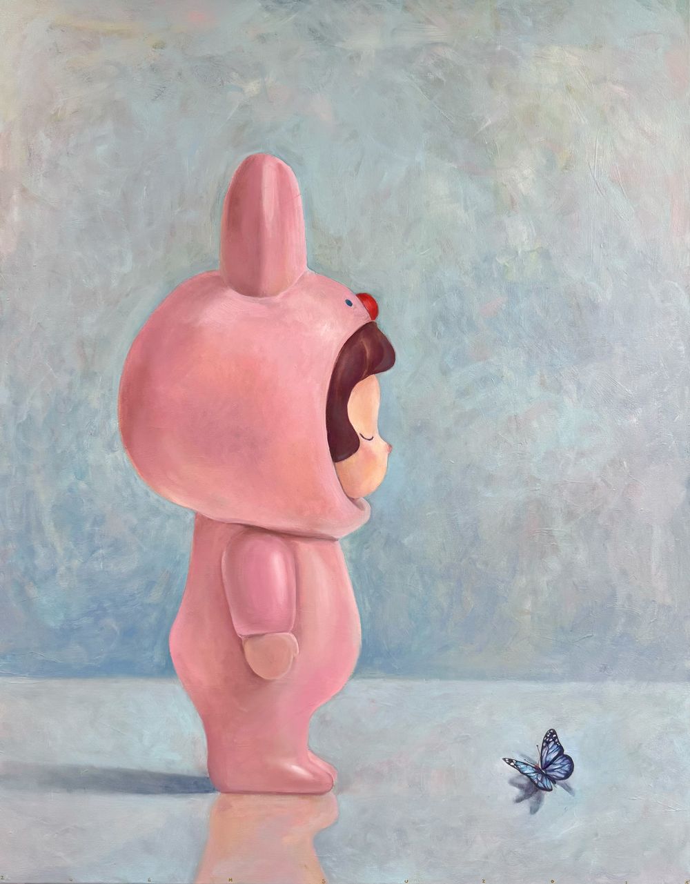 蝴蝶象徵蛻變與重生;在凝視蝴蝶的同時,她也凝視著自己的靈魂與身份。