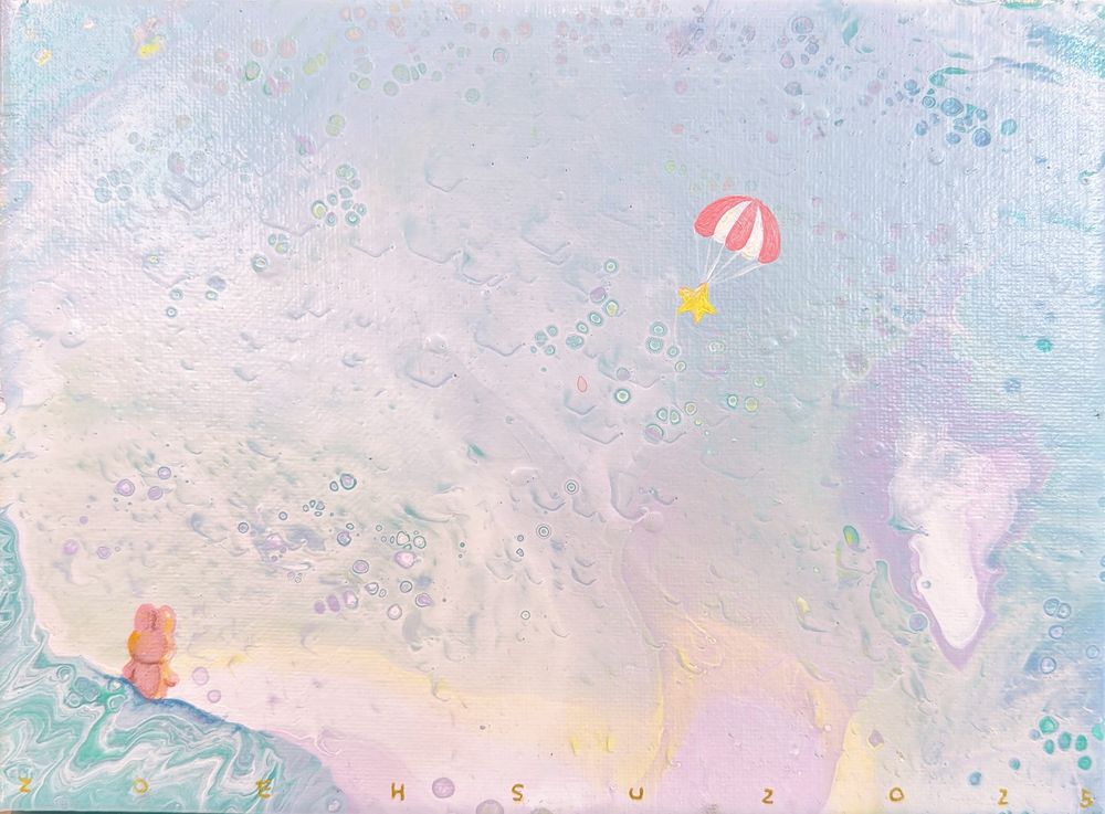 這幅畫流動著等待與希望的氣息。無垠的天空與水波紋理交融,帶來漂浮的輕盈與寧靜。