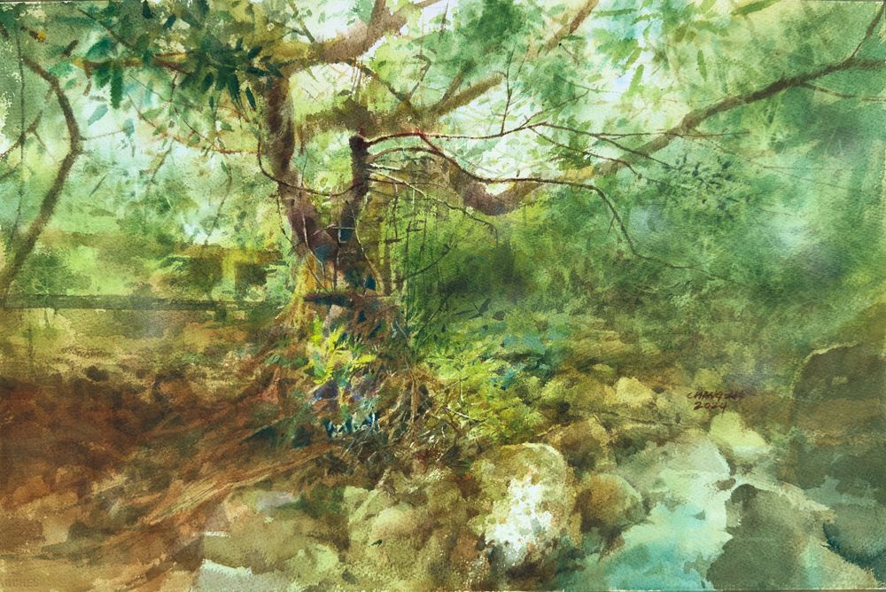 張宏彬的藝術之旅從室外對景寫生到畫室內的創作,這一過程充滿了對自然景物的深度理解和對內心世界的豐富探索。他的作品是對外在風景和內在情感的再造、綜合和整合,是心靈幻想的結晶。